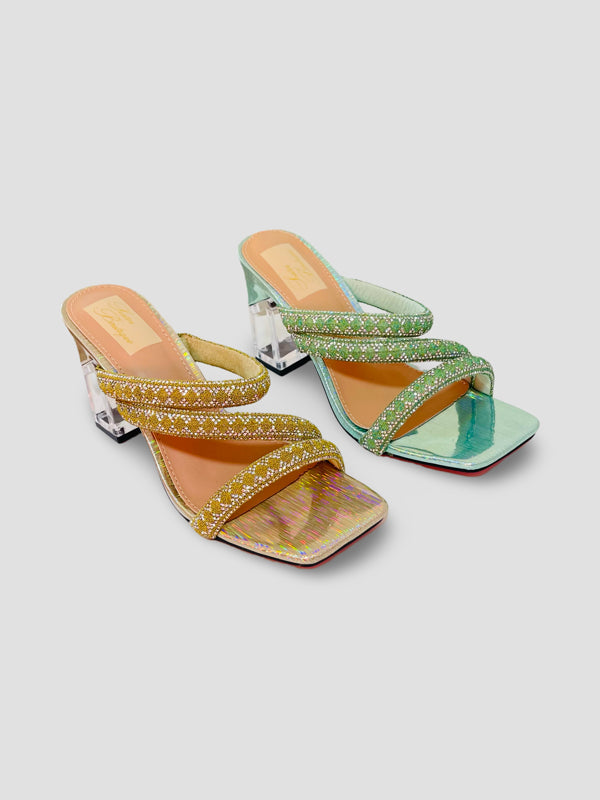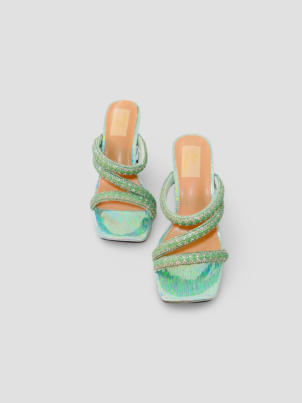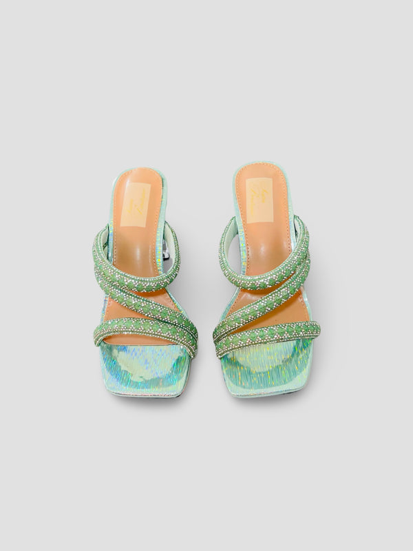 Crystal Embellished Strappy Mules