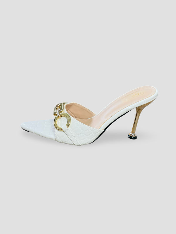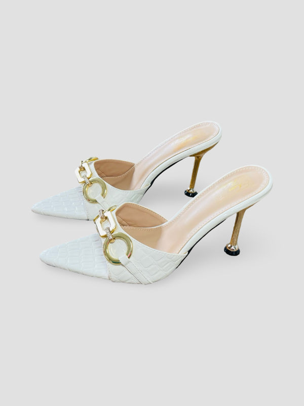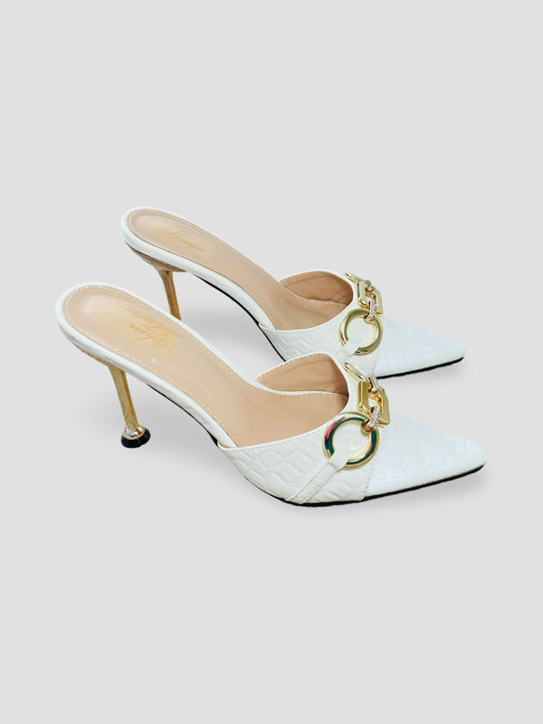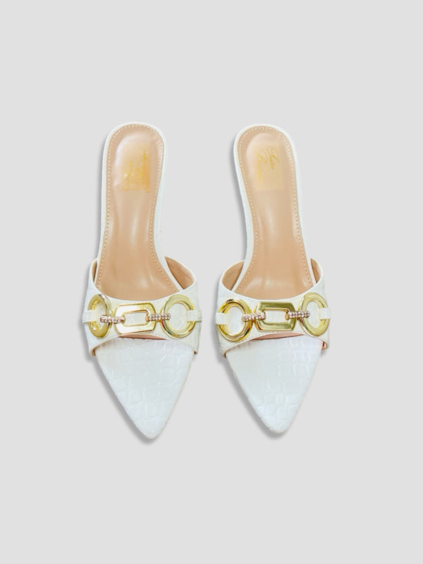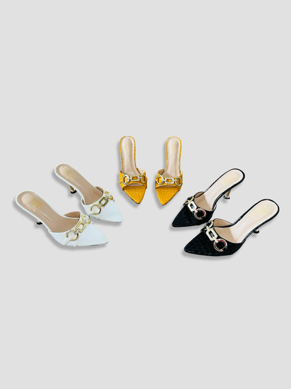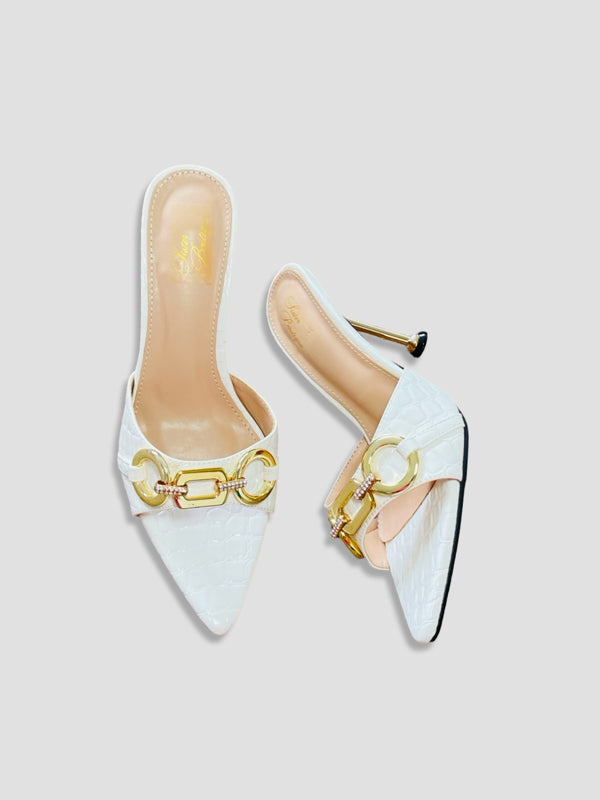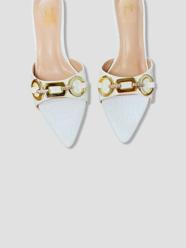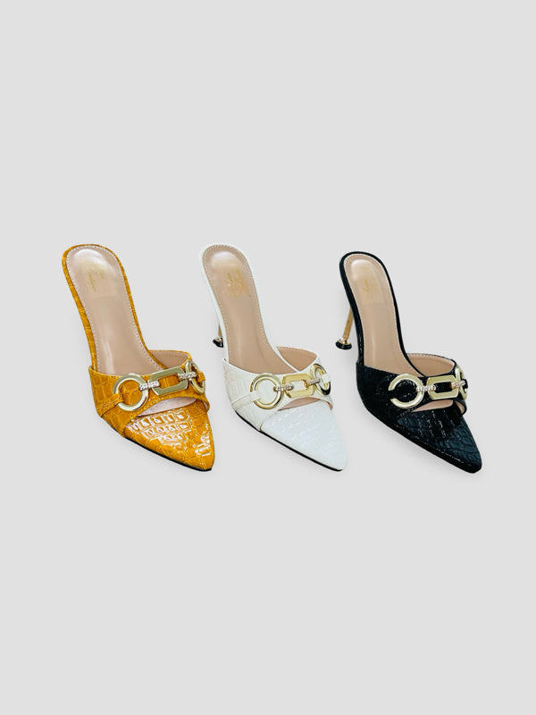 These Bold Buckle Croc Mules feature a sleek pointed toe, croc-embossed texture, and standout gold buckle, adding effortless sophistication to any look, perfect for day-to-night wear.