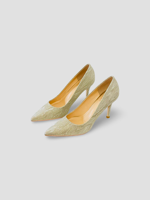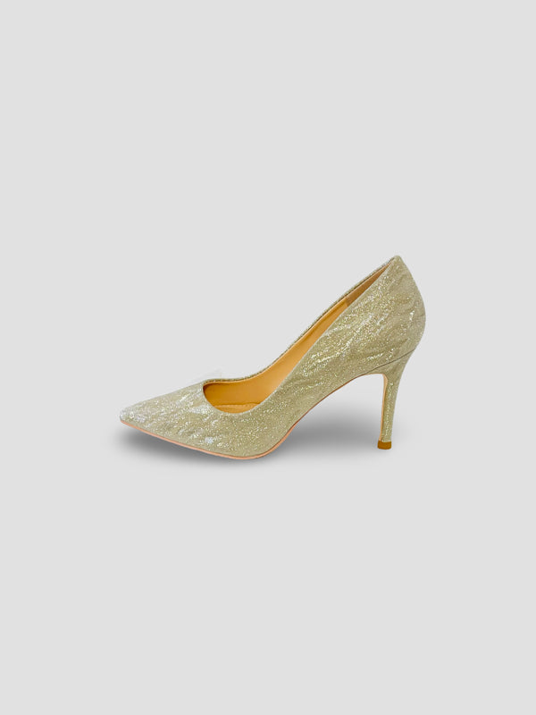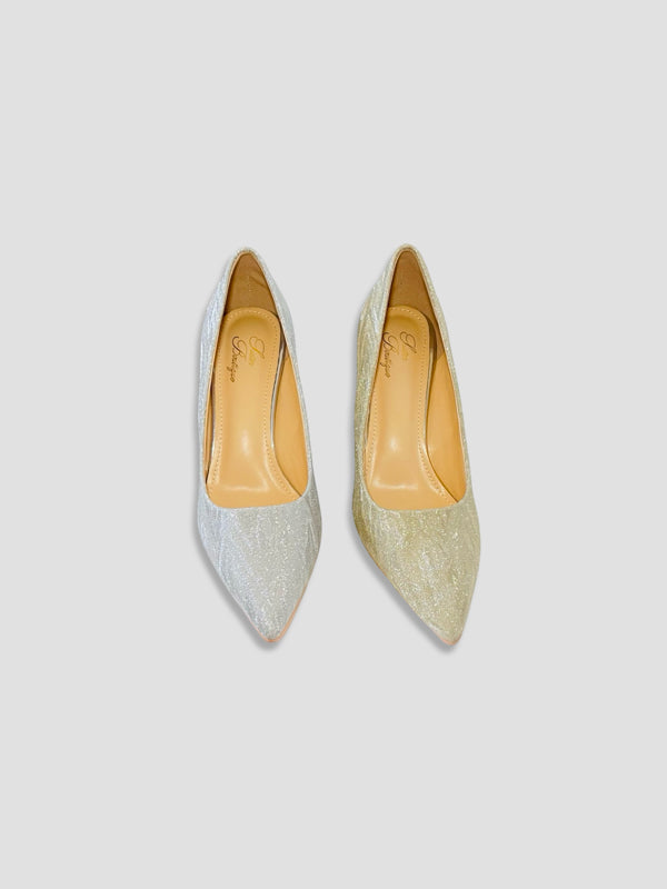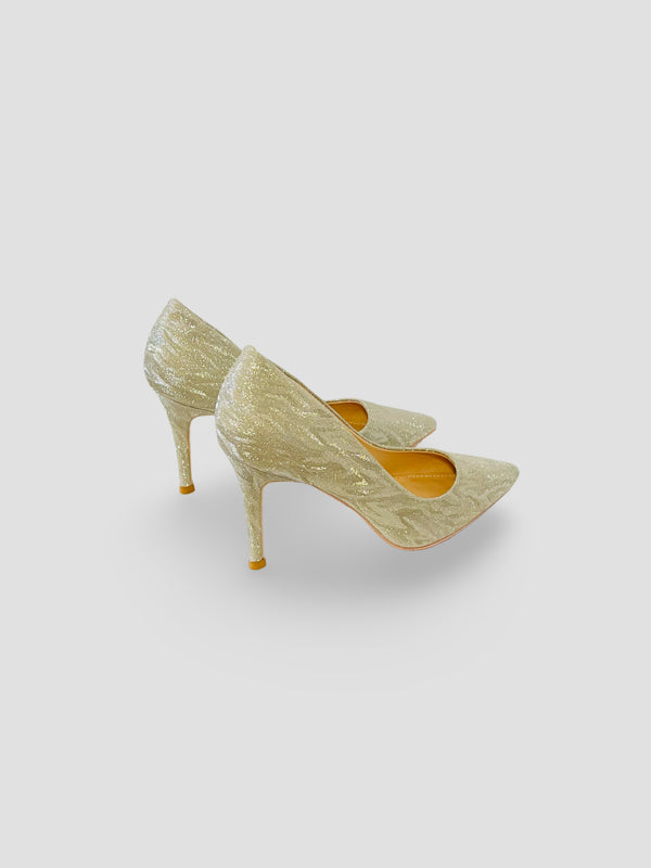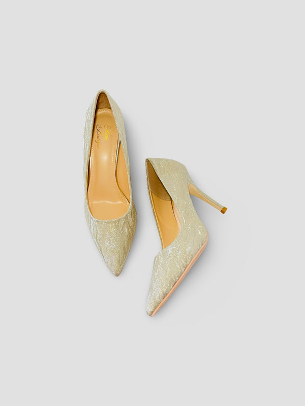 These elegant silver glitter stiletto pumps are perfect for parties or special occasions, offering a sleek and sparkling finish that adds a touch of glamour to any outfit.