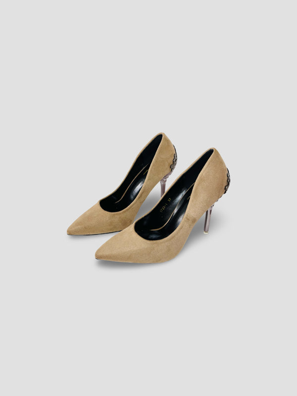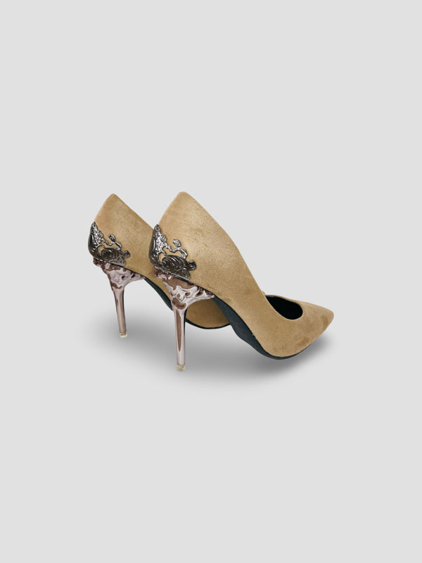 Gold Embellished Stiletto Heels-Suede and Glitter High Heels