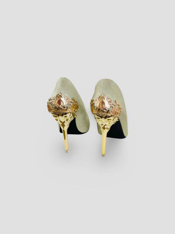 Gold Embellished Stiletto Heels-Suede and Glitter High Heels