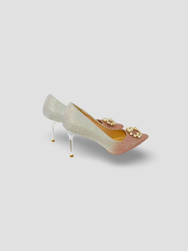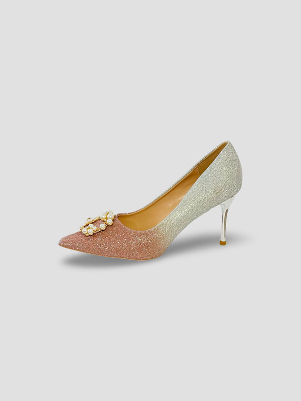 Golden and Silver Glitter Pearl Embellished Stiletto Heels