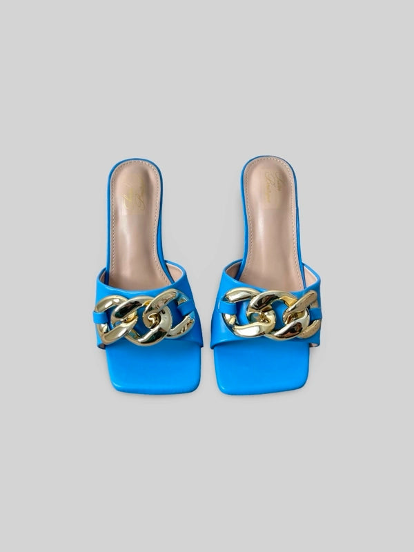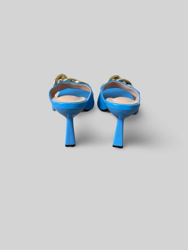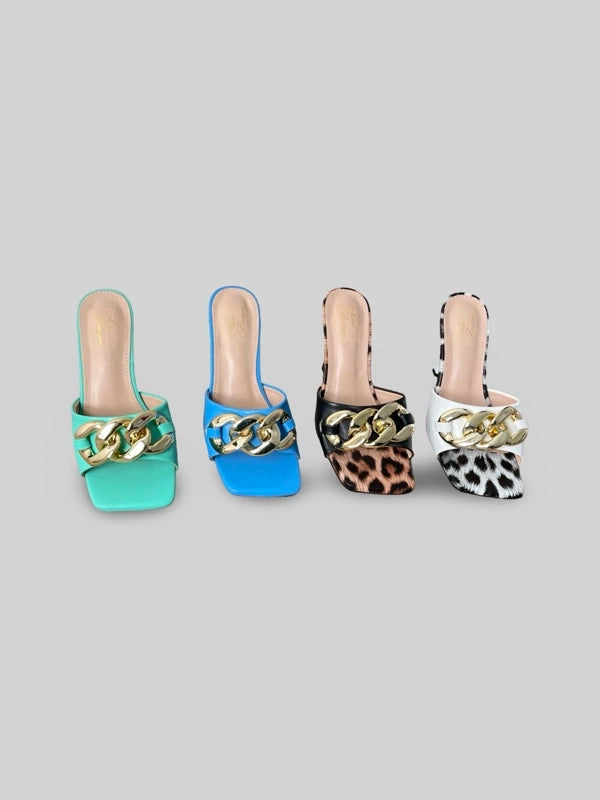 Step into style with Luxury chain-embellished leather slide heels featuring