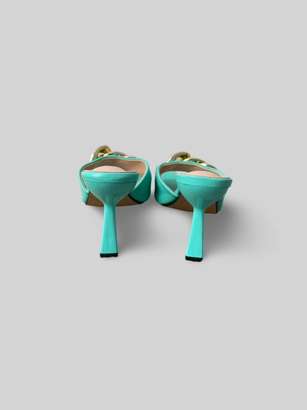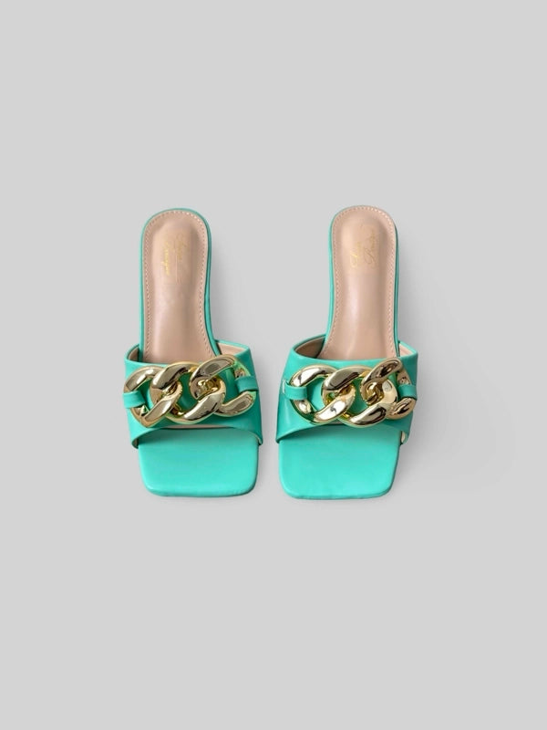 Step into style with Luxury chain-embellished leather slide heels featuring