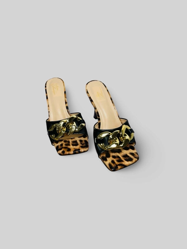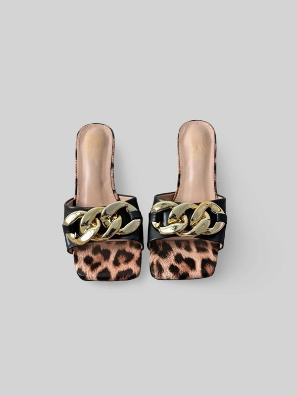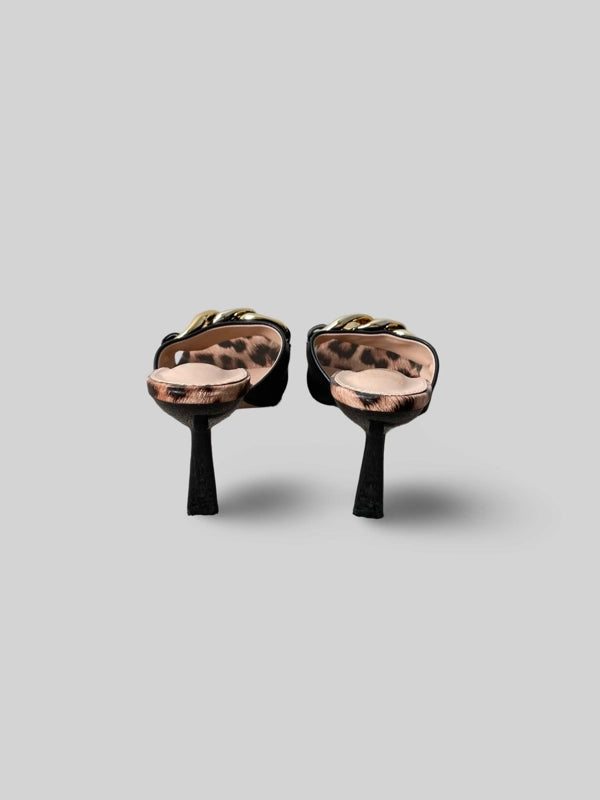 Step into style with Luxury chain-embellished leather slide heels featuring