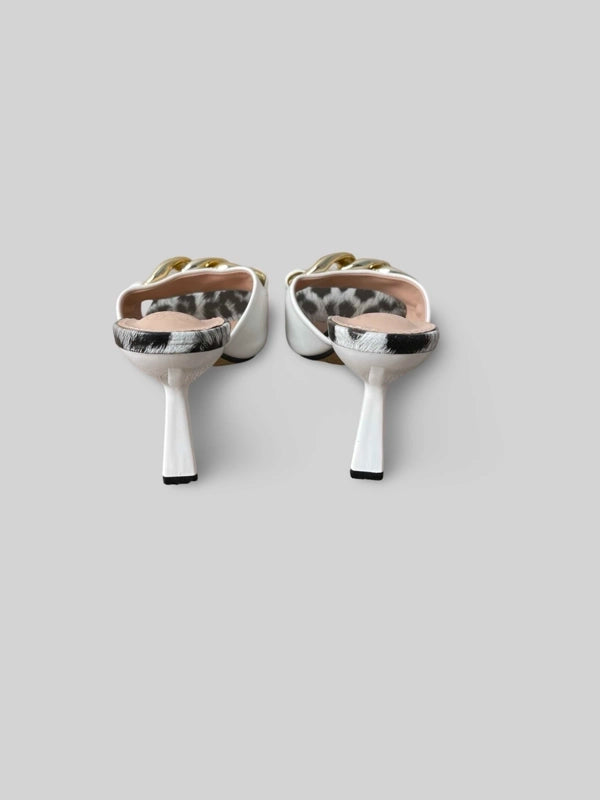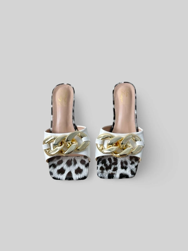 Step into style with Luxury chain-embellished leather slide heels featuring