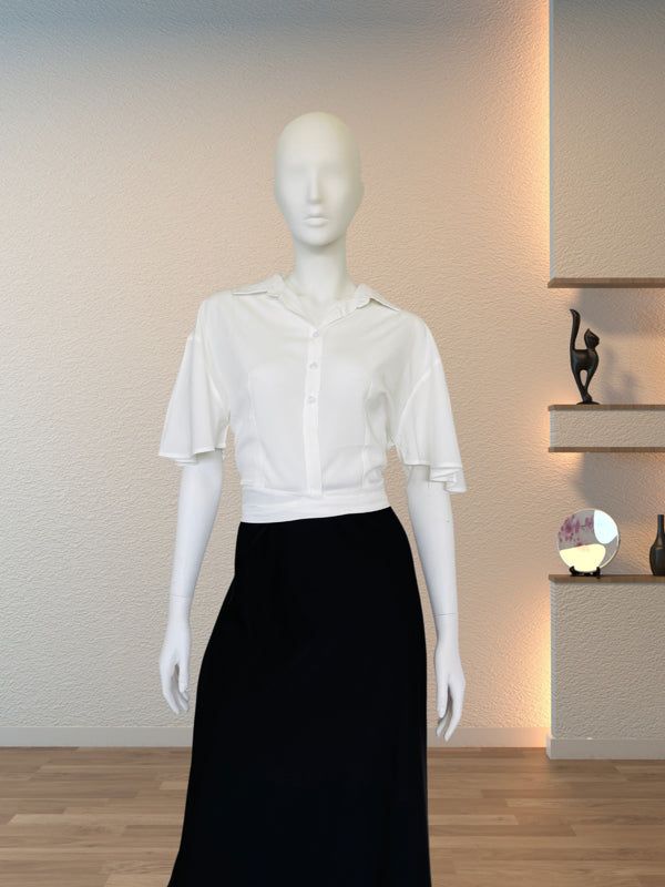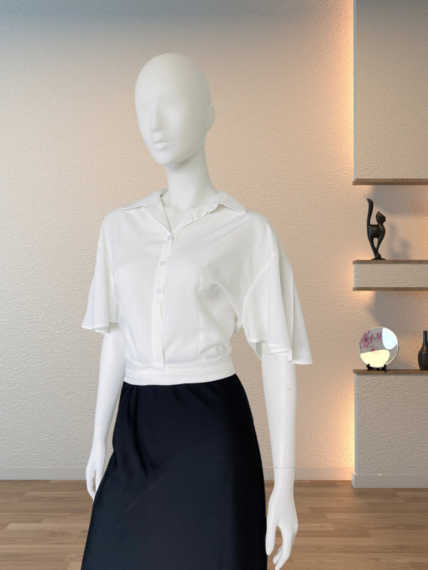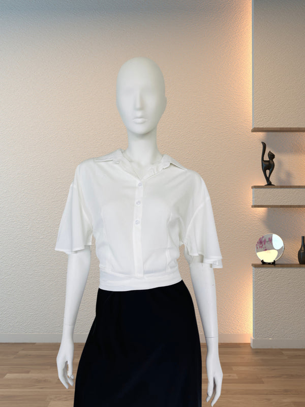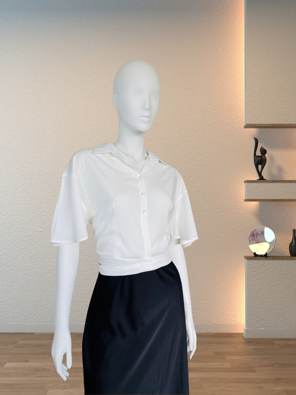 Elevate your casual wardrobe with this lightweight white crop shirt. Featuring a trendy knot-front design, dual chest pockets, and a relaxed collar, this versatile piece pairs perfectly with high-waisted jeans or skirts for a chic, effortless look.